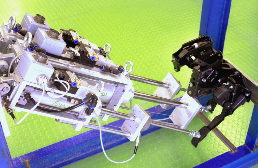 Die Prüfmaschine DYNA-BPS wird für die dynamische Bauteilprüfung an elektrischen Bremspedalen eingesetzt.